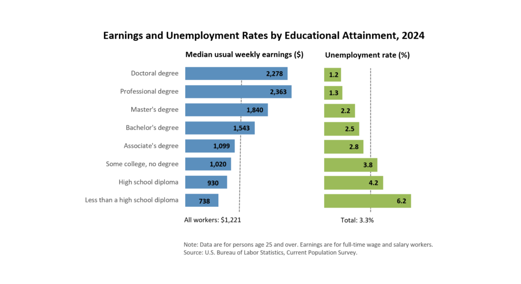 - BLS 2024–2034: +5.2 million jobs, heavy tech/healthcare tilt